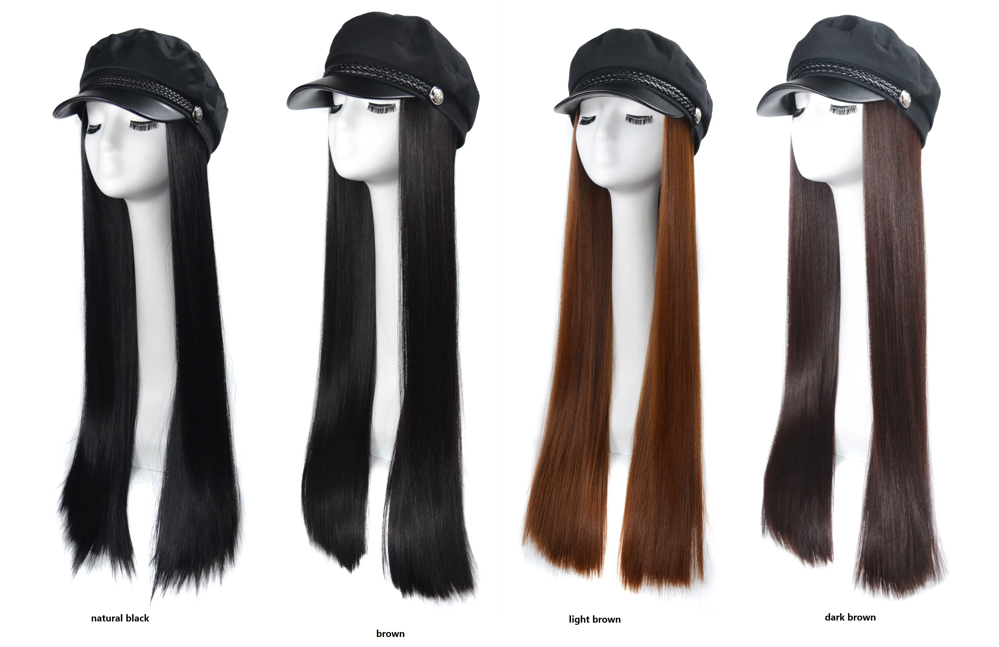 Fashion Black Navy Cap Hat With Hair Wig Long Straight Brunette Hat Wig Aliexpress